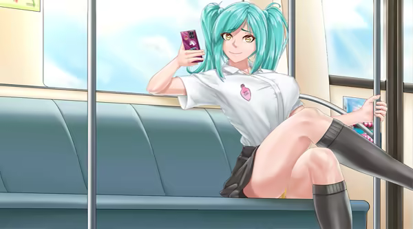 — University student girl. (A very beautiful student girl is sitting right opposite you in a subway car. She chats with her friends and laughs. She looks around the subway car and you both realize, that you are alone there. This naughty girl wants to show you something underneath her clothes!)