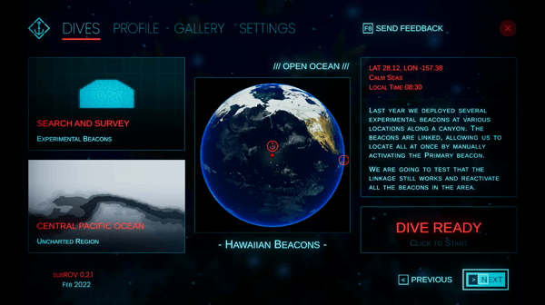 • Interface improvements during the dives (ROV camera orientation indicators, ROV camera zoom, more information on scannable items)