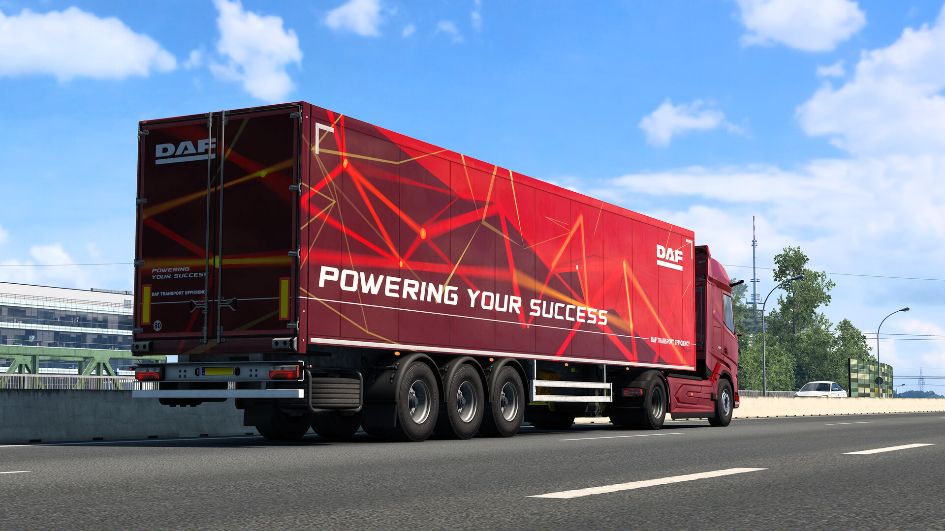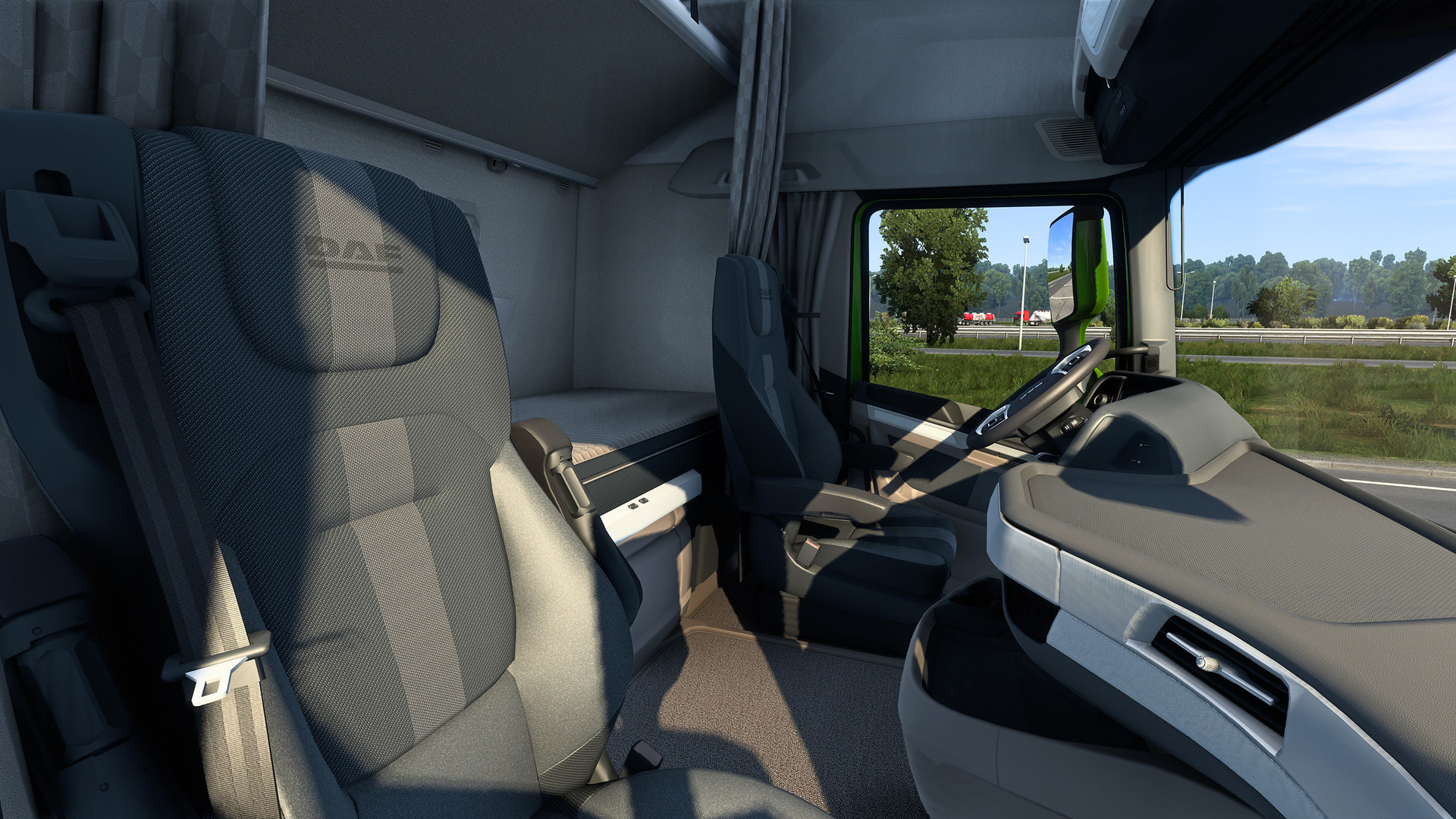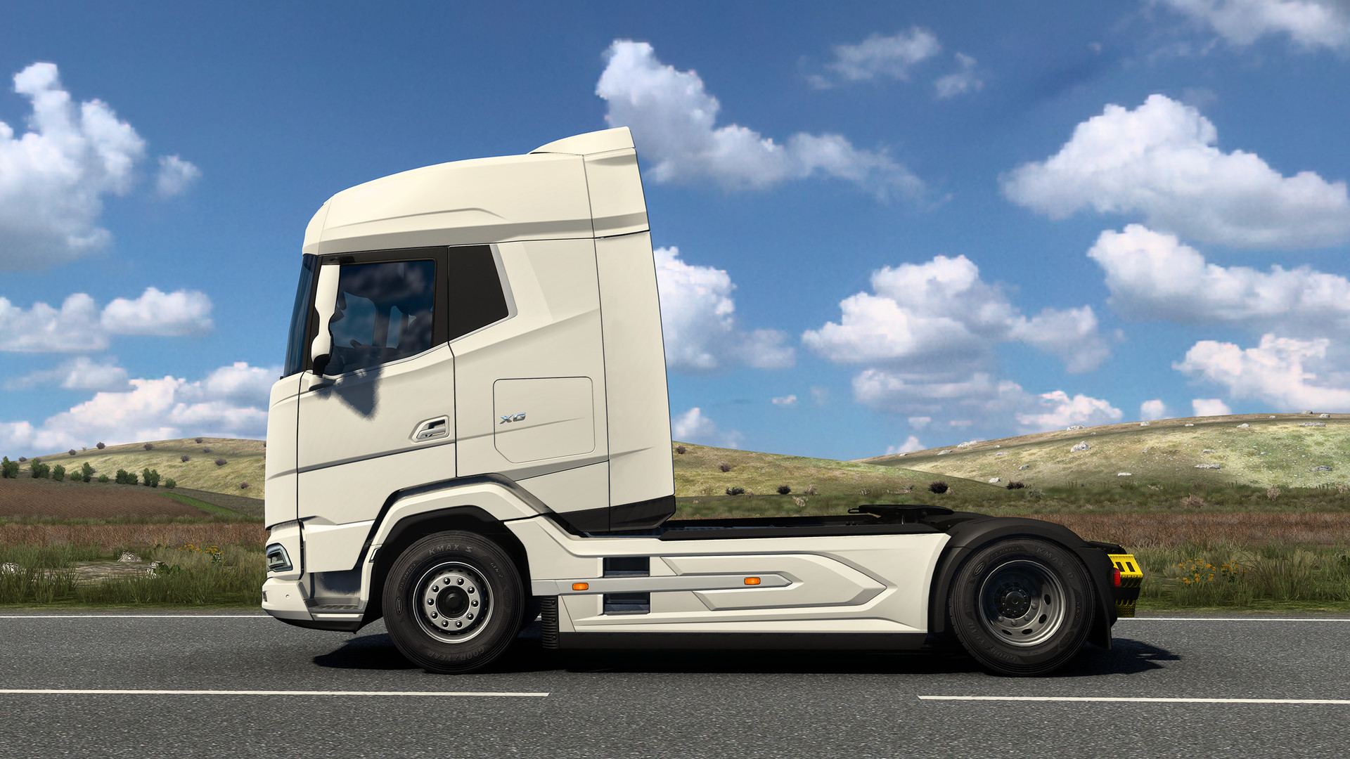The New-Generation DAF is initially available in Euro Truck Simulator 2 with the XG, XG+, and XF cabin options. With the recent update, we are also proud to bring new parts for the DAF XF, DAF XG, and DAF XG+ trucks with the Model Year 2025 DAF proudly presented at the IAA Transportation expo in Hanover. With that, players can now enjoy new chassis options for all cabins: FTG 6x2, FTT 6x4 and the mighty FTM 8x4 as well as updated interiors with an electronic parking brake lever and new sensors, plus a speed limit and blind spot warning displayed on the Driver Information Panel.