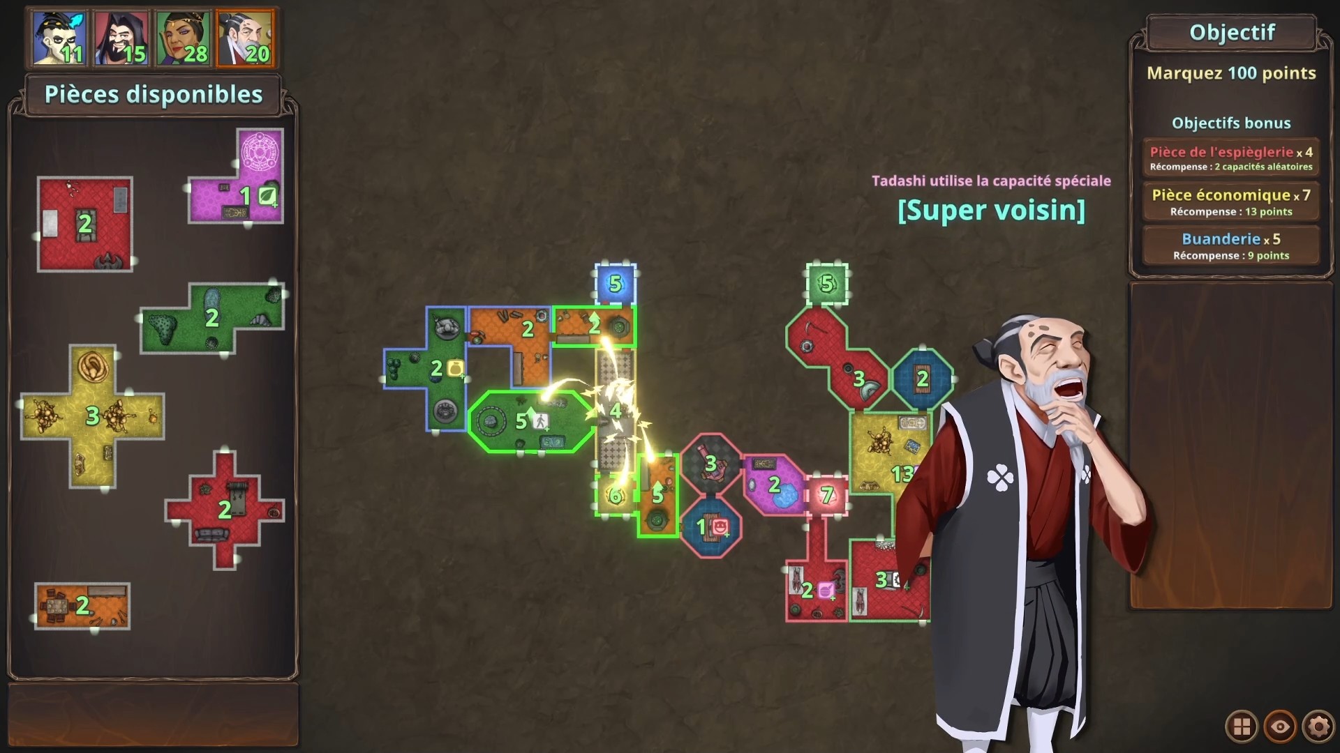 Les différentes pièces ont leurs propres effets uniques et préférences en matière de voisinage. En trouvant les placements optimaux, vous pouvez obtenir un avantage tactique sur vos adversaires et libérer tout le potentiel de votre architecture. Il n'y a rien de plus satisfaisant que de trouver le parfait agencement !
