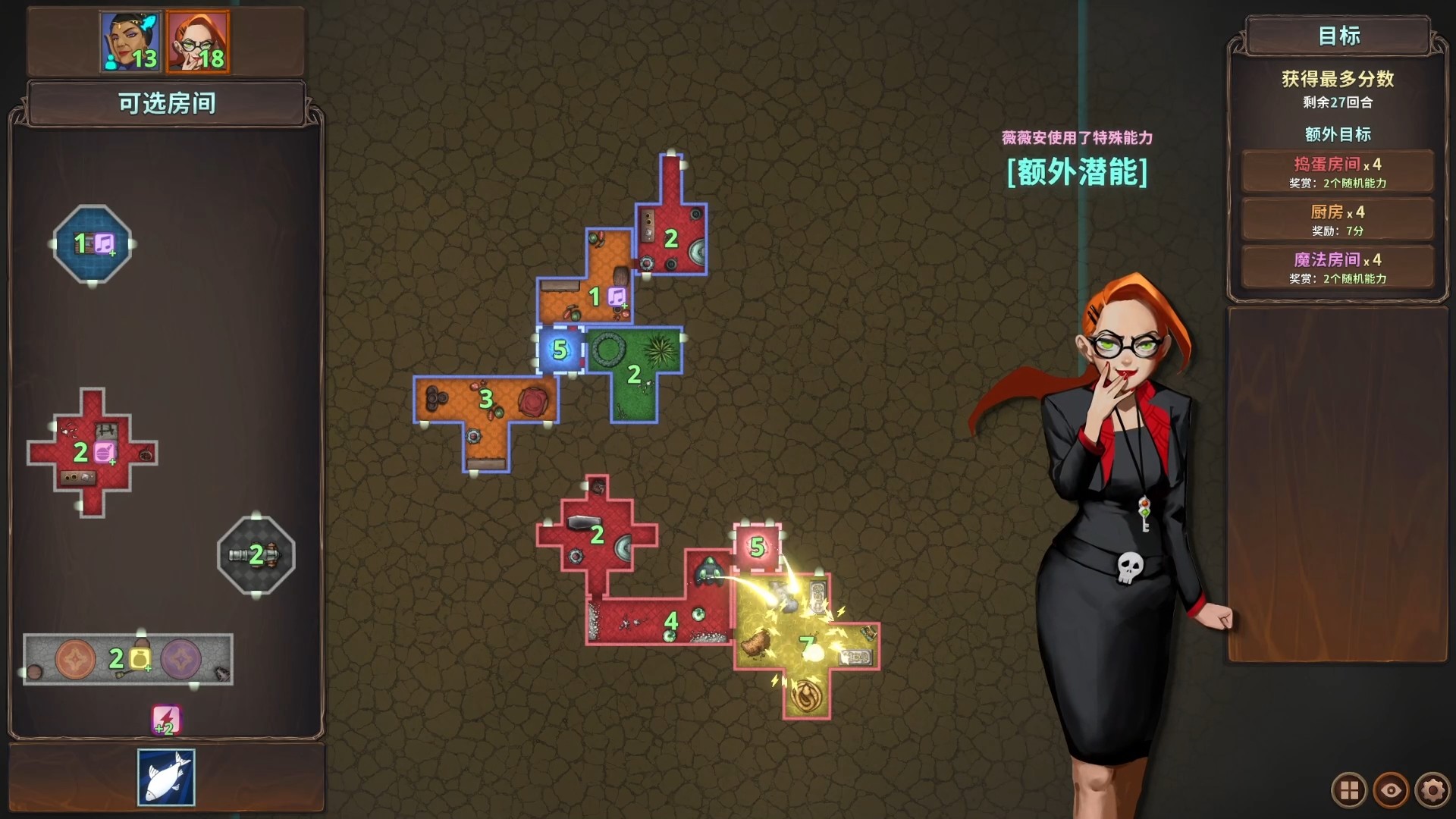 不同的房间均有各自独特的效果和对相邻房间的偏好。找到最优的安放方式,就能从对手手中夺得战术优势、释放自己建筑群的全部潜力。找到最佳位置将会带来无与伦比的满足感