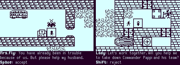 ONE GAME, TWO COLOURS. ONE ADVENTURE, MANY PUZZLES. A short story-based 2-D Puzzle-Adventurer with a 1-Bit Pixel art style.