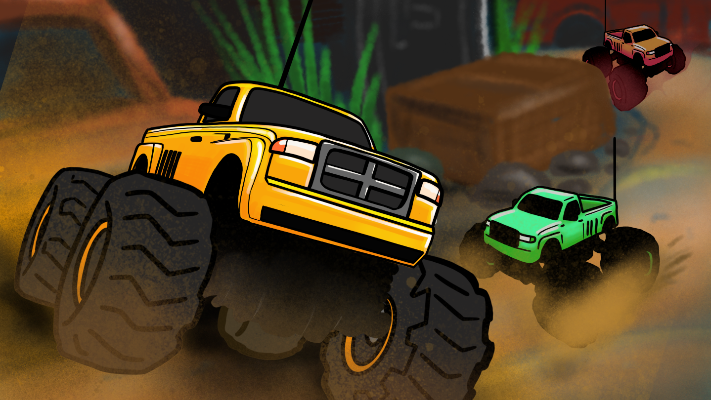 RC Rush is an exciting arcade racing game featuring radio controlled trucks. Win races to unlock career events, compete in head to head battles to unlock new vehicles, and level up your way to becoming the ultimate RC champion!