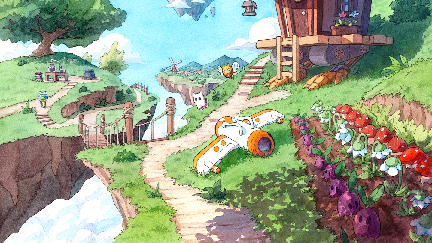 • Travel by balloon, broom, and glider through unique biomes to reach the outer edges of the world to uncover the secrets of your floating home in the sky