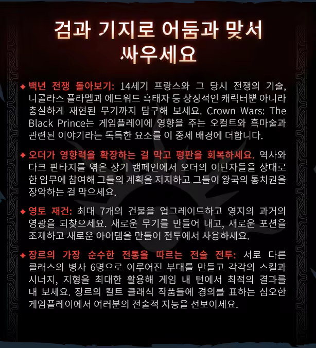 Crown Wars: The Black Prince에 대한 사용자 평가 사용자 평가 정보 환경 설정