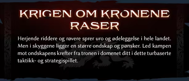 Krigen om kronene raser. Herjende riddere og røvere sprer uro og ødeleggelse i hele landet. I dette turbaserte taktikk- og strategispillet tar du tronen som lord av herredømmet ditt. Led krigen mot ondskapens krefter med slottet ditt som base.