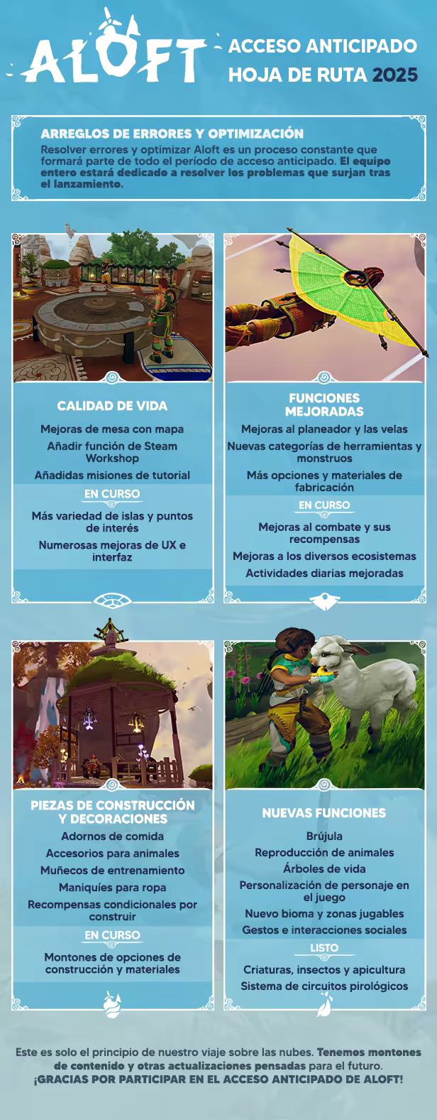 «Aloft estará en acceso anticipado durante al menos un año y se lanzarán actualizaciones periódicas a lo largo de dicho periodo.»
