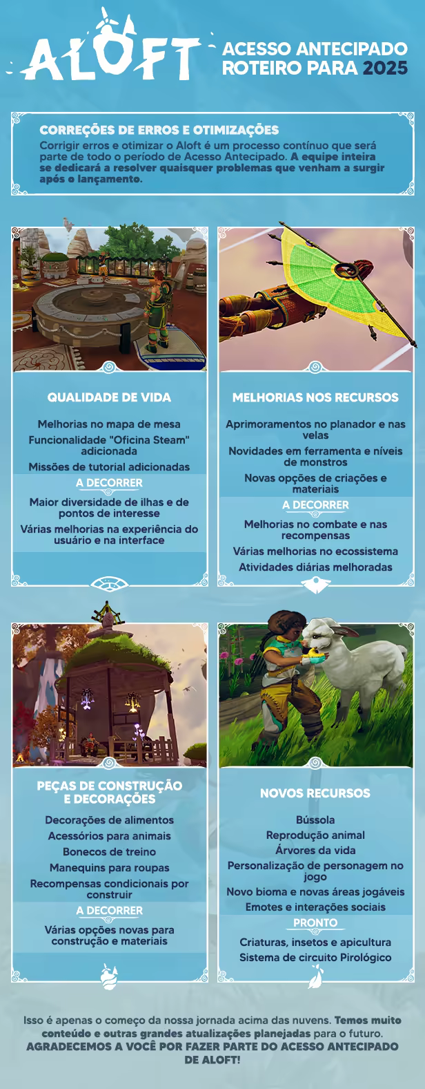"Aloft vai permanecer em Acesso Antecipado por pelo menos um ano, com atualizações regulares planejadas ao longo desse período."
