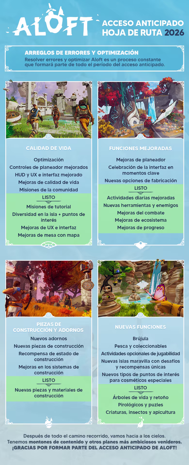 «Aloft estará en acceso anticipado durante al menos un año y se lanzarán actualizaciones periódicas a lo largo de dicho periodo.»