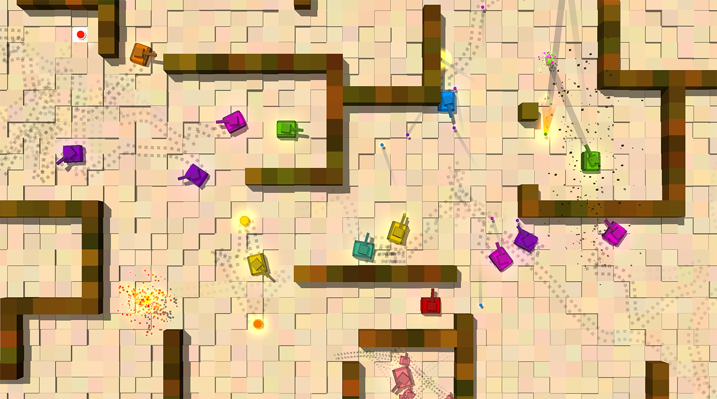 Tanks is a top-down shooter in which you control a blue tank and try to defeat various enemy tanks with assorted abilities to clear levels. You can play Tanks in multiple gamemodes, alone or via cross-platform multiplayer with as many friends as you'd like.