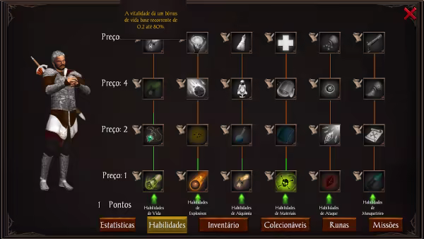Desenvolva seu personagem através da árvore de habilidades, ganhe bônus poderosos ao coletar runas e melhore as habilidades básicas. Invista na árvore de explosivos, de ataque, de vida, de alquimia, de materiais, ou da árvore de habilidades específica do personagem.
