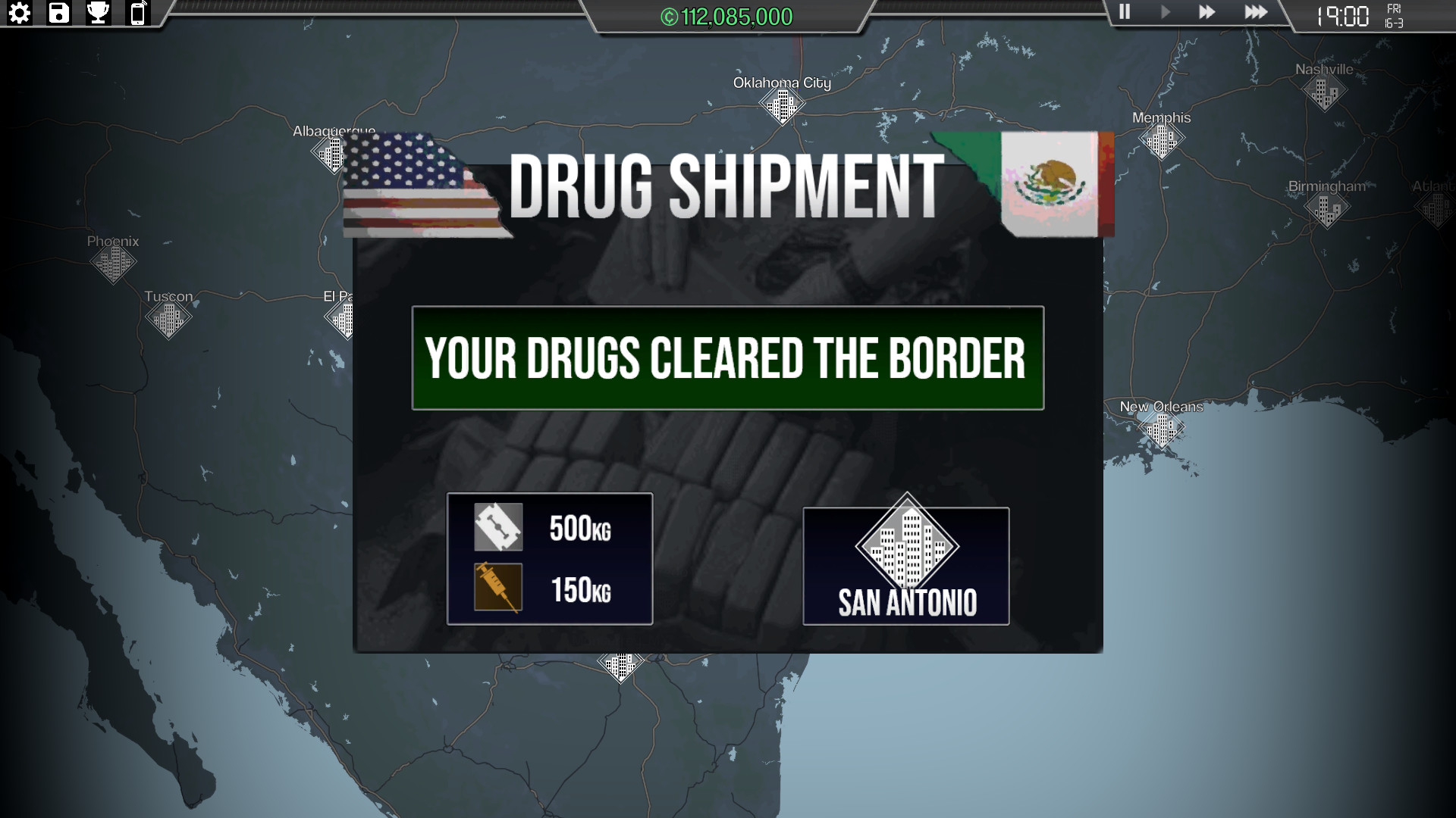 Send money and weapons south of the border to build up your base of operations and take over rival territory. Increase the size of your shipments north, or recruit mercenaries to expand your control into new cities.