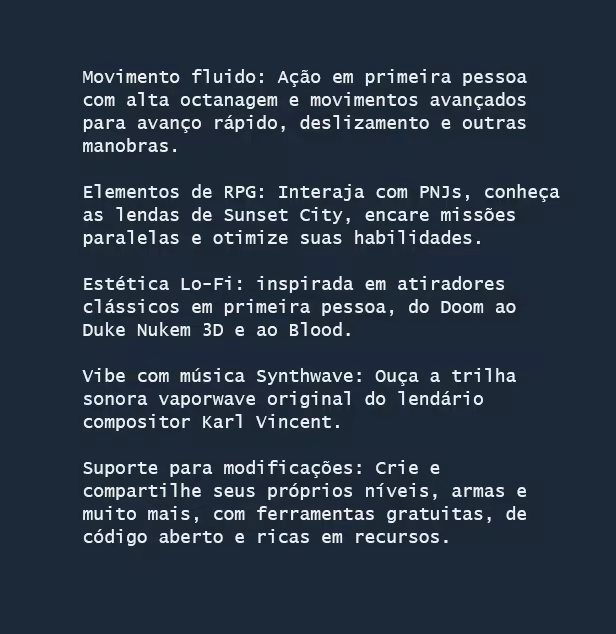 Atiradora Cyberpunk em primeira pessoa com uma história e elementos RPG bem elaborados. Você é Lucy, uma samurai de rua otimizada em busca de memórias perdidas. Lute em níveis amplos, abertos e interativos dominados por zumbis, robôs e chefões!