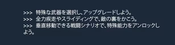 RPGの要素が取り入れられた夢中になること必至のストーリーが魅力のサイバーパンクFPS。主人公は流浪のサムライ、ルーシー。強化訓練を受けたルーシーは、失った記憶を取り戻そうとしている。やくざやゾンビ、ロボットや悪の親玉が蔓延る広大かつオープンでインタラクティブな世界で、戦いを繰り広げよう!