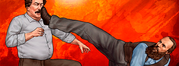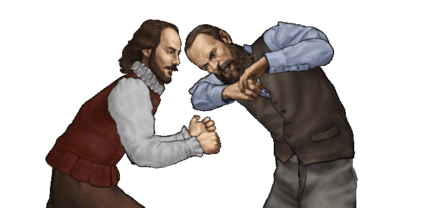 The greatest writers of all time are fighting each other in the arenas that were inspired by their work. Each character can summon his own "magic" arena where he becomes the boss of the level for a short amount of time. Each character can be knocked out with one hit in standing in "danger" zone. Once the "magic" arena is summoned by one of the 15 combatants - the fighting game becomes an arcade while the "boss" player is trying to defeat the opponent before the magic arena time runs out.