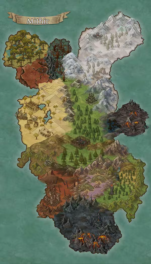 The Triune created the beautiful lands of Mithir and all that is within them. The Triune's desire to create life was fulfilled on the day he brought people into the world. Naturally, he provided to them blessings beyond measure and they longed for nothing. The most prosperous life possible was the common standard and no man suffered for the Triune watched over them and kept them close. It was the most fulfilled existence one could imagine.