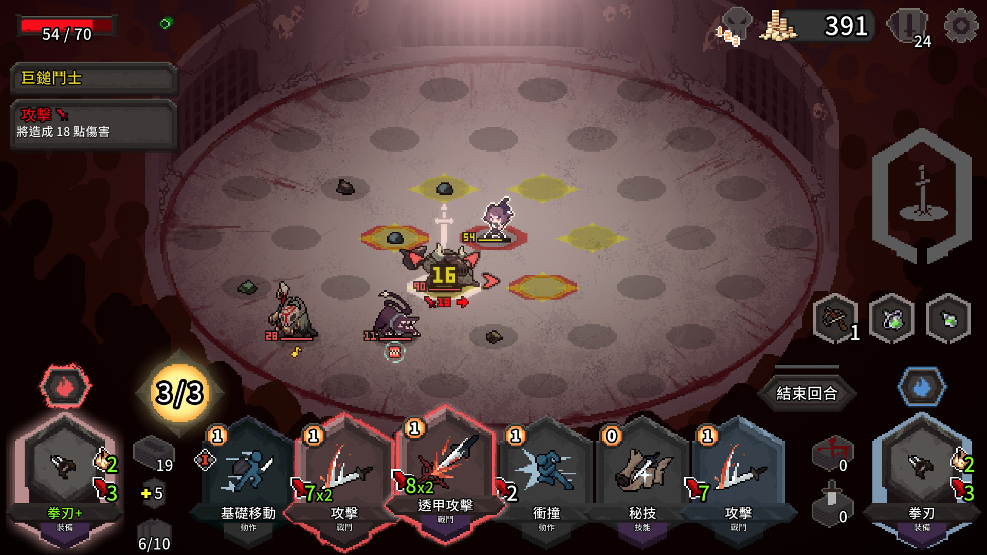 《鬥技場的阿利娜》是將「Slay The Spire 殺戮尖塔」+「Into the Breach」= 牌組構築 x 戰棋策略!