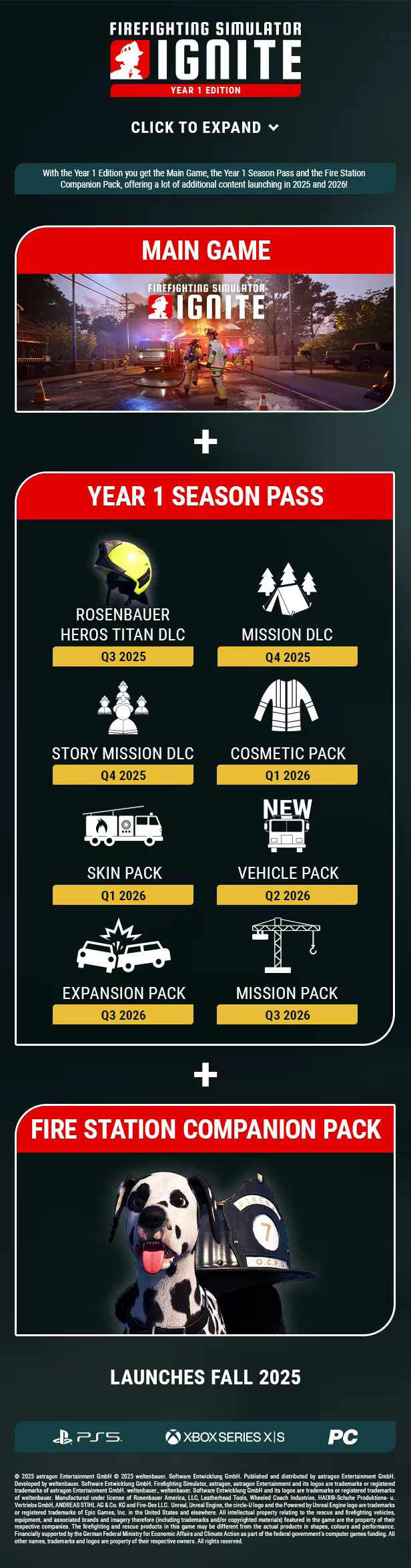 Men oroa dig inte – du kan lära dig att släcka bränder och använda verktygen på rätt sätt i brandstationsnavet som fungerar som ditt högkvarter mellan dina nödinsatser. Koppla av mellan uppdragen, ta en närmare titt på den stora fordonsflottan som innehåller troget återskapade lastbilar från Rosenbauer och välj ditt nästa uppdrag.
