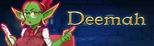Deemah has a lot to live up to, being the daughter of the once famous ledger smith Gemlo The Snide, who pulled the Royal House of Slevosh back from the brink of financial collapse. She grew up without real friends or potential lovers and instead focused on statistics, arithmetic, and gold management. Her no-nonsense way of looking at the world and her overly scrutinous eye meant it didn’t take long for her to excel at every job that came her way. However, just when she thought she’d settled into mid-level management, Deemah fell victim to her own success. Deemah soon found herself the enemy of her less precision-inclined coworkers. How droll! But of course, nothing can stop a goblin of her caliber, and as soon as she saw an ad for The Half Pint Lady; the cogs began to turn. Now THAT was a business she could flex her talents with…