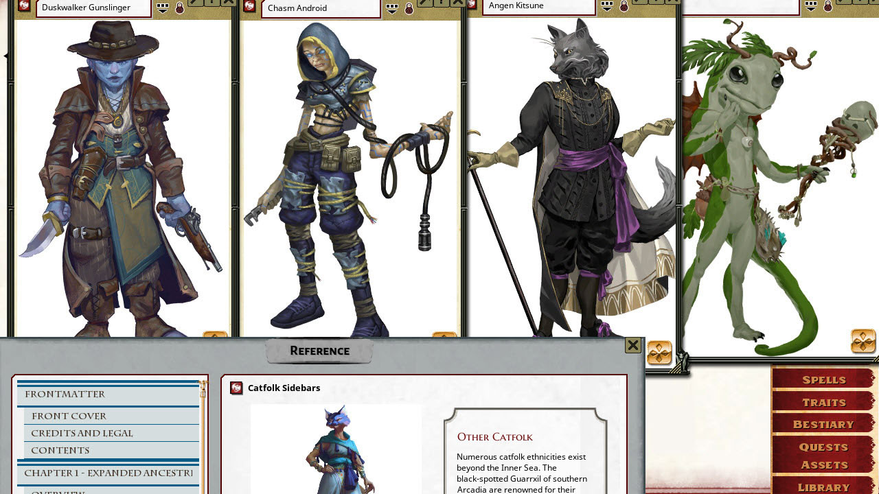• Fantasy Grounds drag/drop data including: 6 new ancestries, 63 new heritages for new and existing ancestries, and 375 feats. Many of these data items contain new Fantasy Grounds automation.