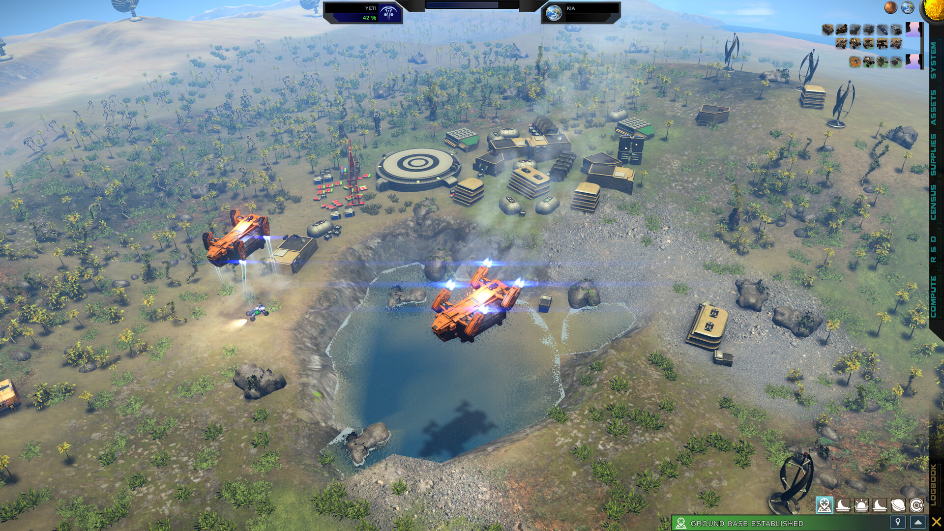 • Ground expeditions are directly under your control, transporting you to the planet surface where you must lead them. Between the fleet anchored in orbit and the away teams contending with local factions, survivors, and the remains of former colonies, you will find yourself tackling a variety of complications. Traditional RTS systems such as base building and unit management on the surface introduce a completely different set of mechanics compared to your operations in space.
