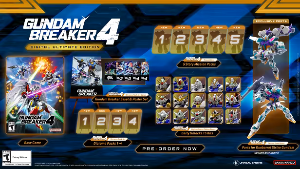 - Diorama Pack Set Bonus (Gundam Breaker Series easel and poster set to display in Diorama Mode)