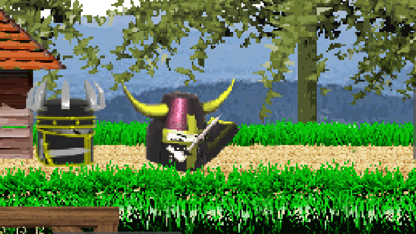 In the game, you have to help eggs to collect avocados, oranges, soda cans and wooden branches to build armors and weapons