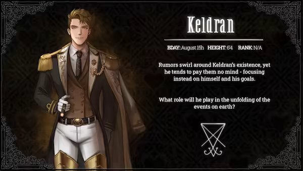 Keldran is not dateable in this release and is only available in the DUFE: Cadenza DLC.