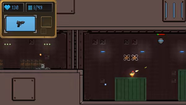On your quest, you will make use of 20 weapons - from ordinary stones, through pistols and rifles, to plasma guns. To further increase your chances of survival, collect the chicken currency, Middlings, or Midds for short, to buy upgrades between the missions. Also, try to look for secrets to gain additional advantage!
