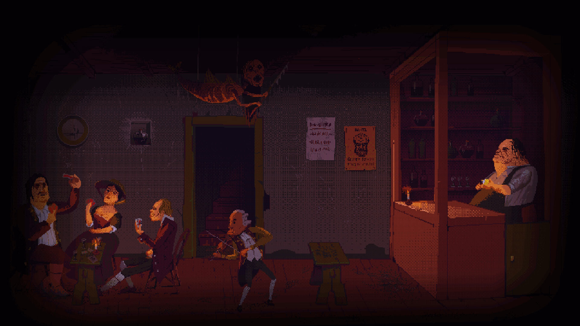 The game features freeze frame depictions of murder crime scenes rendered in the style of pixel-art.