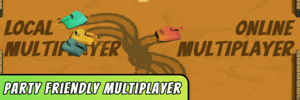 Enjoy beating your friends locally in split-screen multiplayer up to 4 or online up to 8. With an interactive main menu, there is no more idle waiting for other players. While you wait you can customize your tank, choose game mode and map or draw something with the trail of your tank.