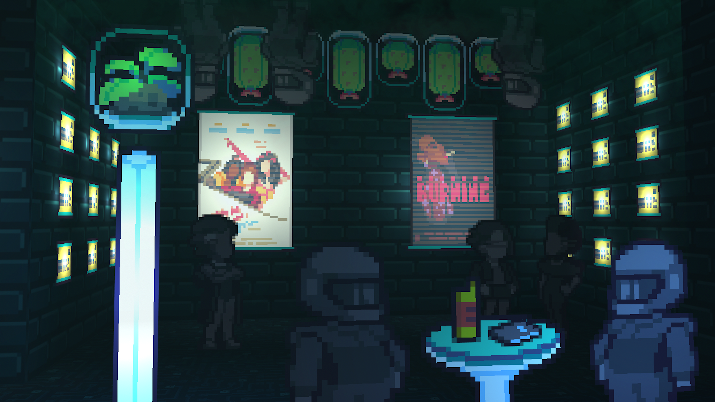 • Bold aesthetic, blending pixel art witl low poly 3d. It kinda looks like a PS1 hiddem gem, huh? Take a sip, taste of the retro visuals, and soon after, feel the refreshing notes of current pop culture aesthetics and many little surprises.