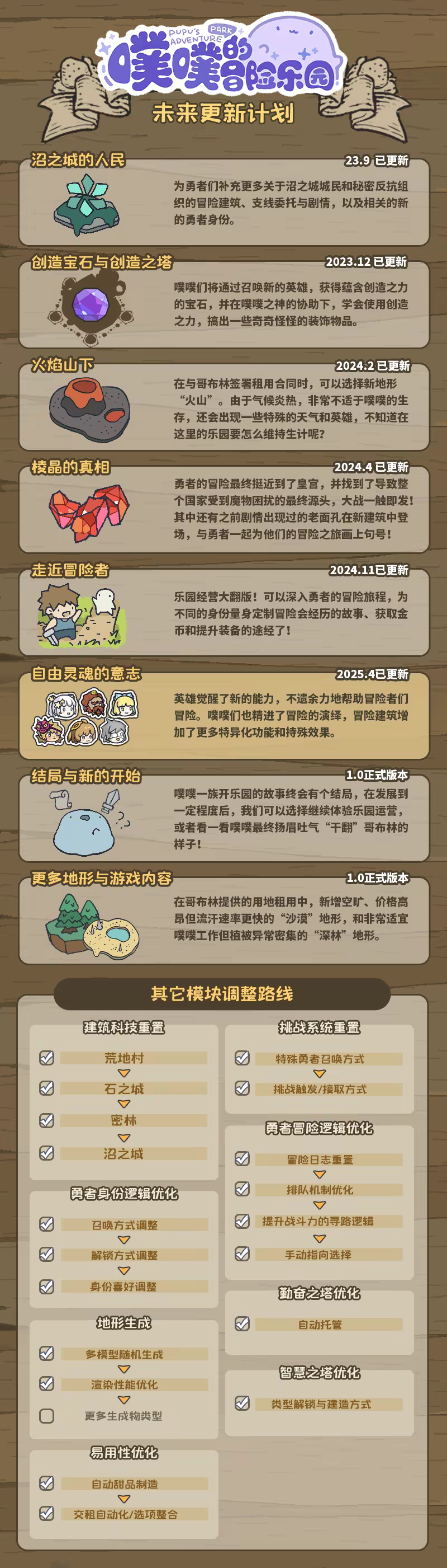 噗噗们经营了一个冒险乐园,吸引被哥布林的力量召唤来的“勇者”来游玩。噗噗的冒险乐园意在为勇者们量身打造一次难忘的冒险体验,通过努力建设乐园设施来为满足勇者们的需求!