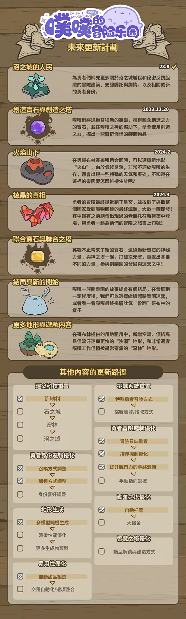 噗噗們經營了一個冒險樂園,吸引被哥布林的力量召喚來的“勇者”來游玩。噗噗的冒險樂園意在為勇者們量身打造一次難忘的冒險體驗,通過努力建設樂園設施來為滿足勇者們的需求!