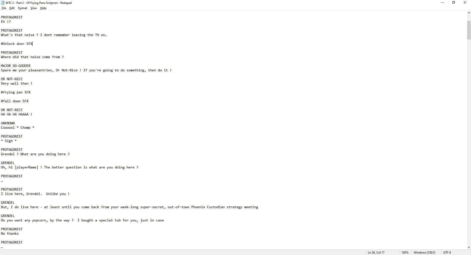 This is the original script for the Of Frying Pans And Boxes DLC, written whilst I was on holiday in Gurnsey