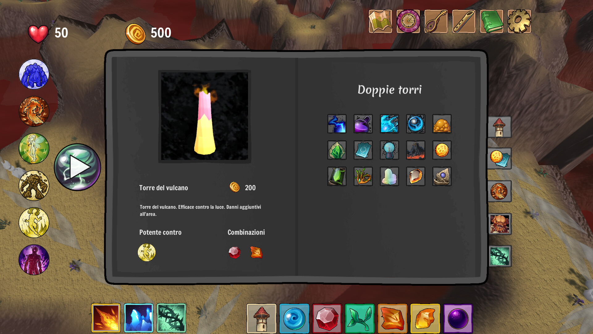 • Posizionate le vostre torri in qualsiasi punto della mappa e scegliete le giuste combinazioni di elementi per ottenere la vittoria.