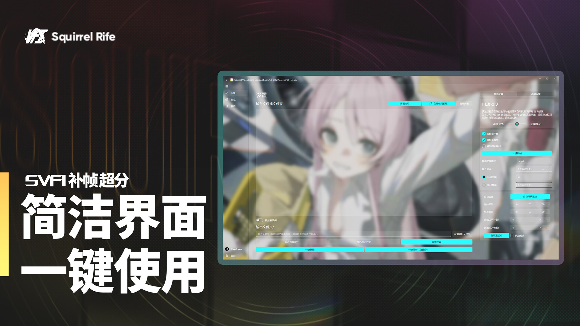 SVFI补帧:一款致力于动漫素材高性能优化的AI软件。使用AI算法,轻松将低帧率视频提升至高帧率。动漫、真人视频、图片序列输入均可