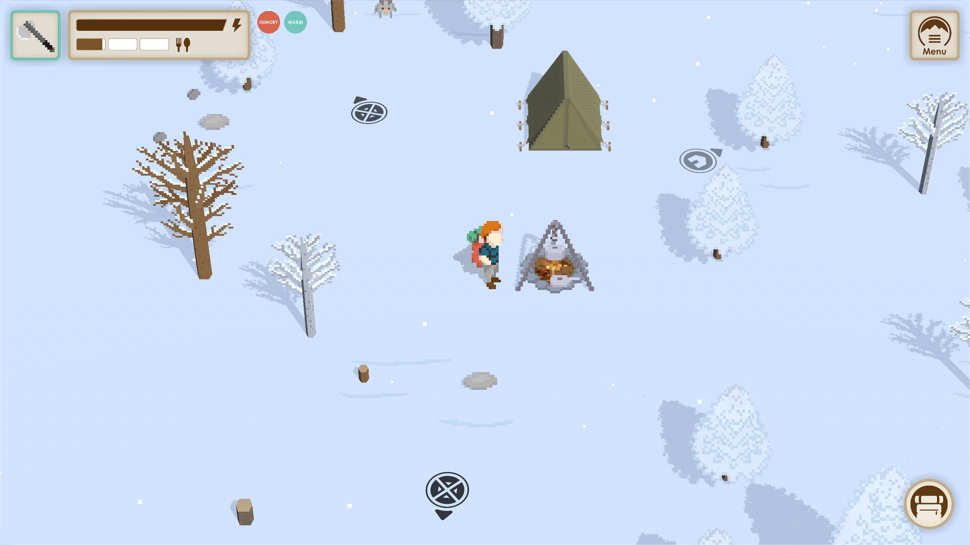 Make your own way through the wilderness: build a cozy cabin or take your tent to discover more. Retro vibes and evergreen optimism ensoul this survival adventure featuring clever craftables, curious critters, and a handful of inspiring landmarks tucked away throughout.