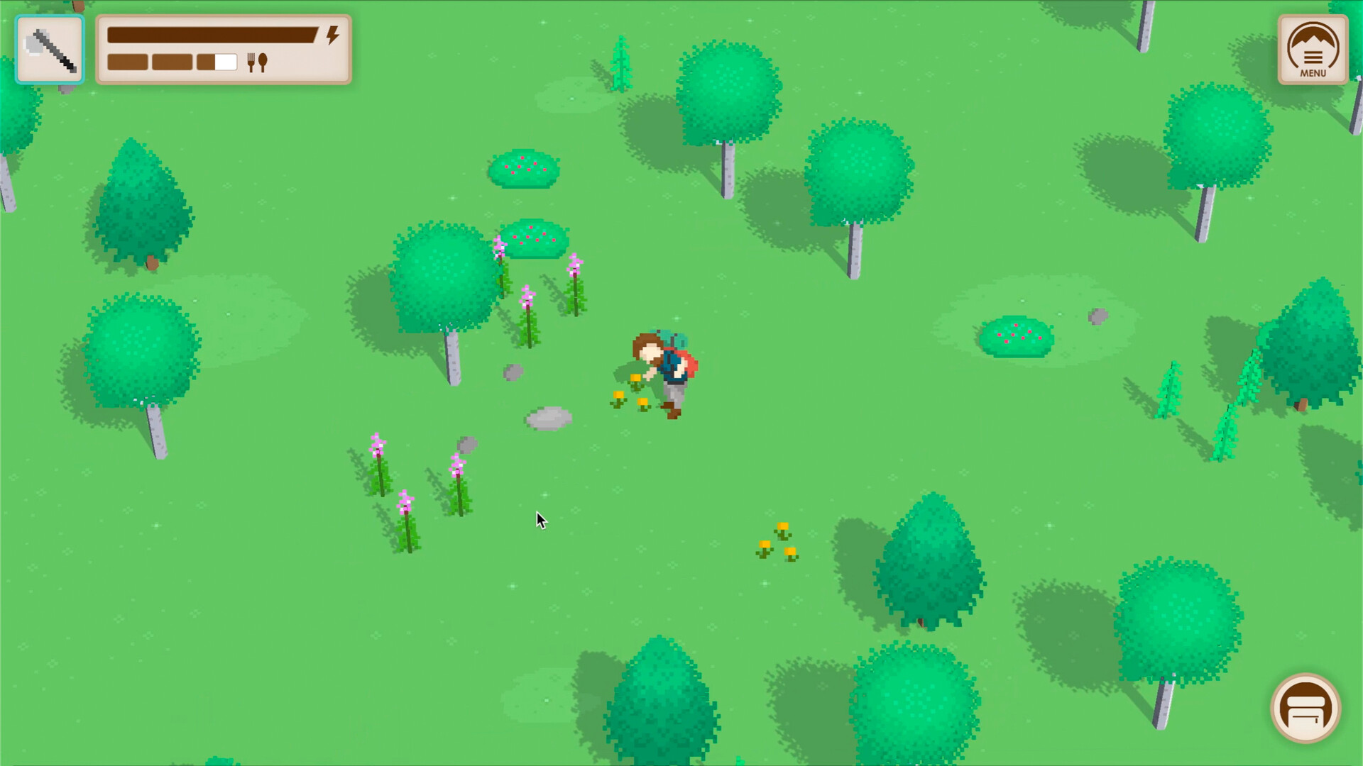 Make your own way through the wilderness: build a cozy cabin or take your tent to discover more. Retro vibes and evergreen optimism ensoul this survival adventure featuring clever craftables, curious critters, and a handful of inspiring landmarks tucked away throughout.