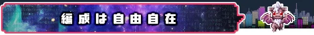 約16万通りのパーティ編成シニカルRPG、登場。 約100体の仲間を組み合わせて、自分にとって最も戦いやすい編成を組んでドット絵世界を救いましょう。 一部のコンテンツは、曜日ごとに中身が変わります。 大丈夫、“異世界”の“誰か”が助けてくれる。