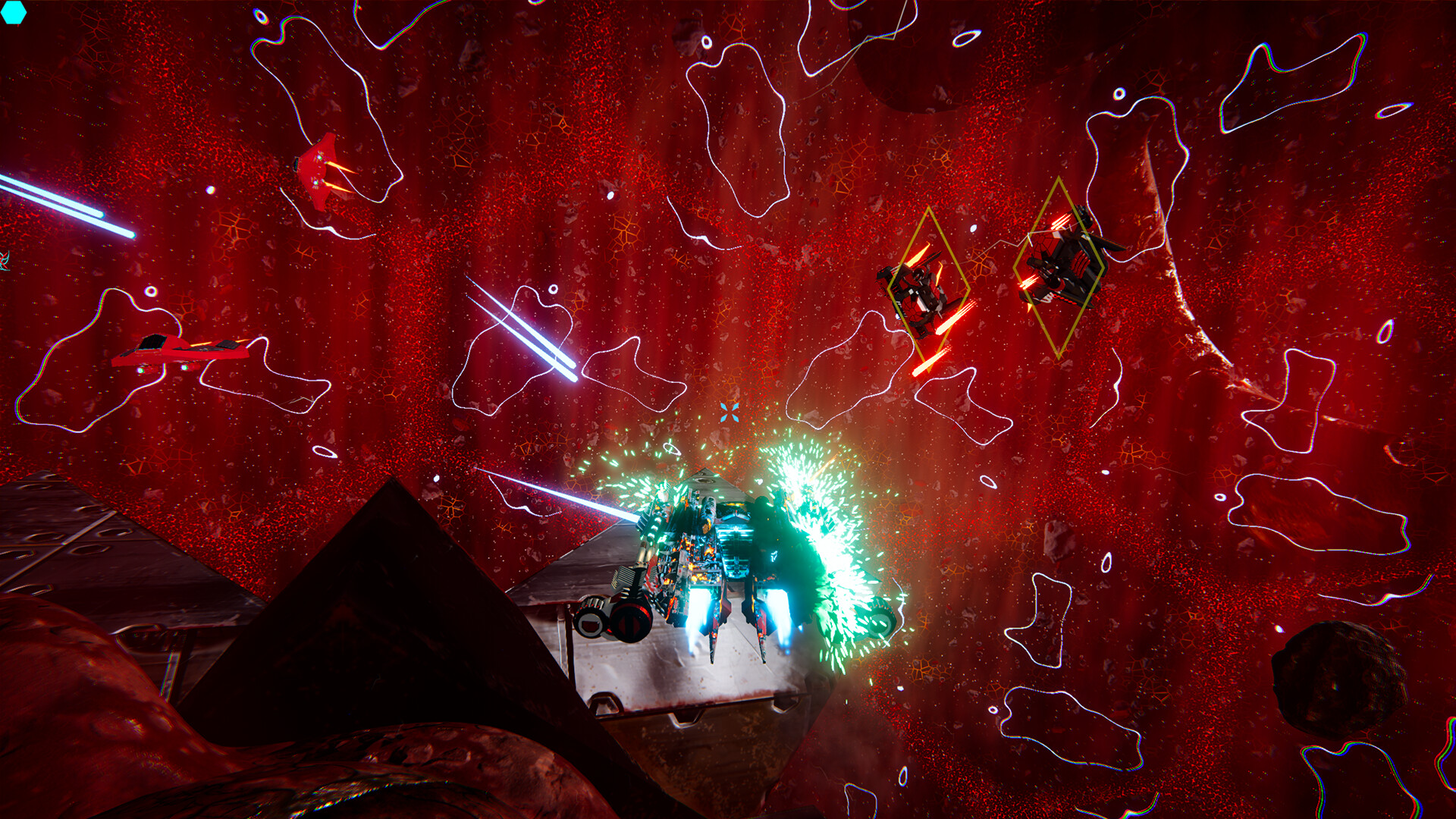 OnSlaught is a combat driven space game, but plays like a classic boomer shooter! Rip through fleets of horrifying alien ships and obliterate destructible environments as you shoot, grapple, and bring carnage to your creators.