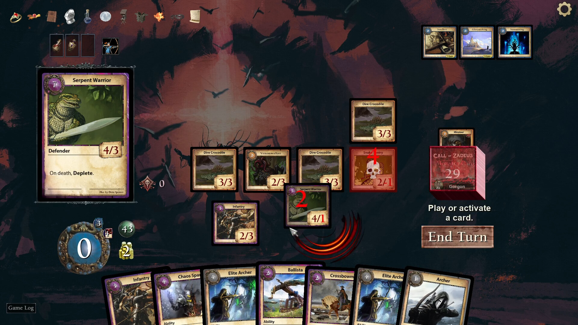 Each enemy is represented by a deck of monster cards. Monsters attack in waves just like a tower defense game, and you must destroy them before they get close enough to attack you. Outlast the enemy's Monster Deck, and you win the battle. Cast huge area-of-effect spells, set up a hoard of Defenders, assemble crazy combos, and plan crazy deck manipulation strategies!