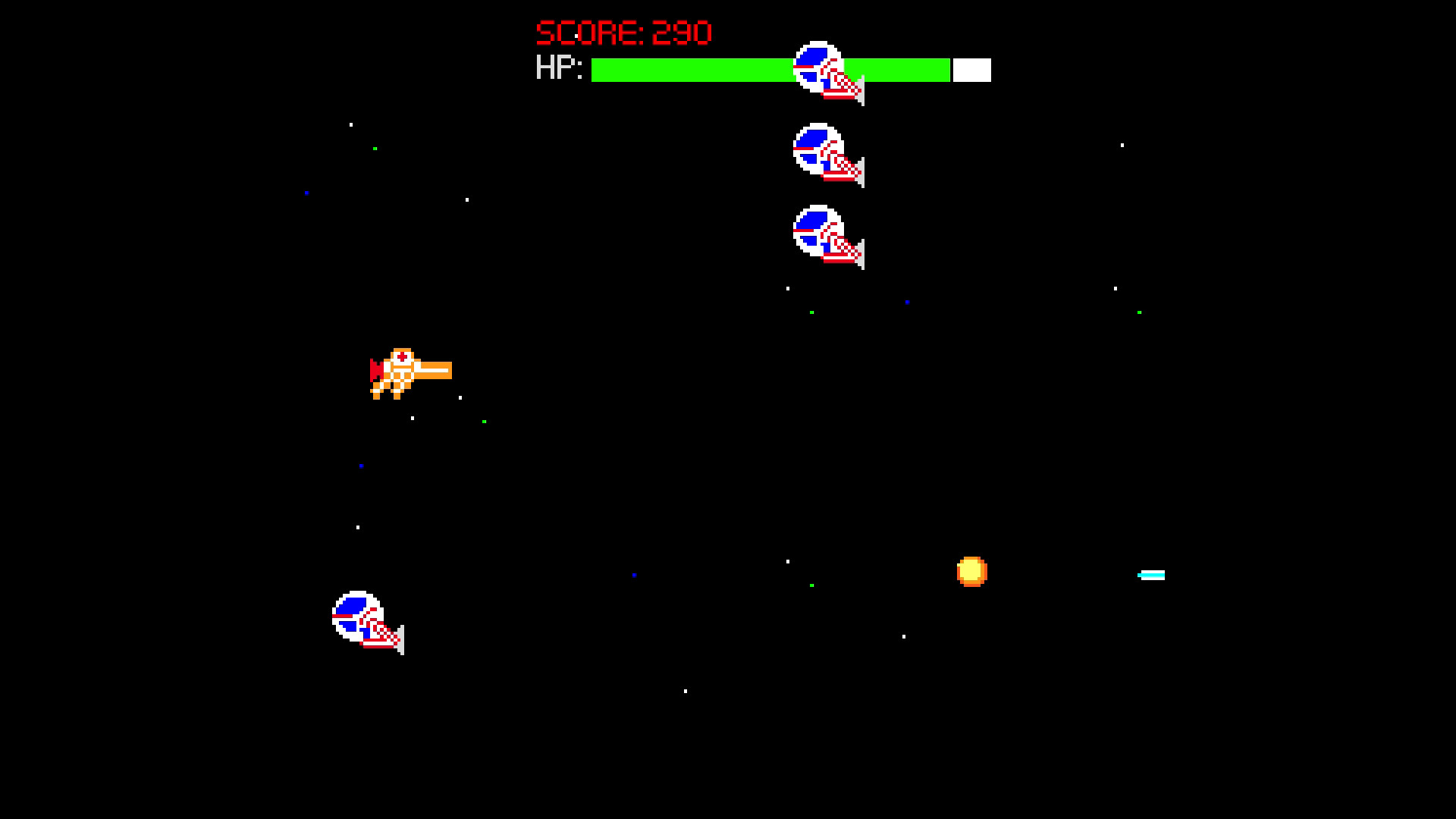 This is a shoot em up game , In this game the player combats a large number of enemies by shooting at them in the space . player will destroy the core of the battleship of enemy to win the game.