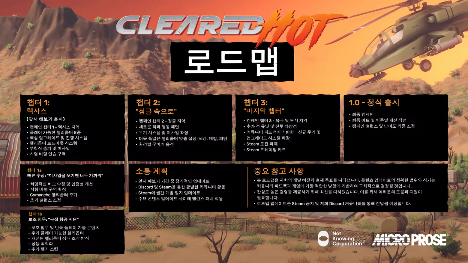 “Cleared Hot will benefit from player feedback and give the team the opportunity to engage with, adapt and adjust the game and future content based on the feedback on the path to 1.0.”