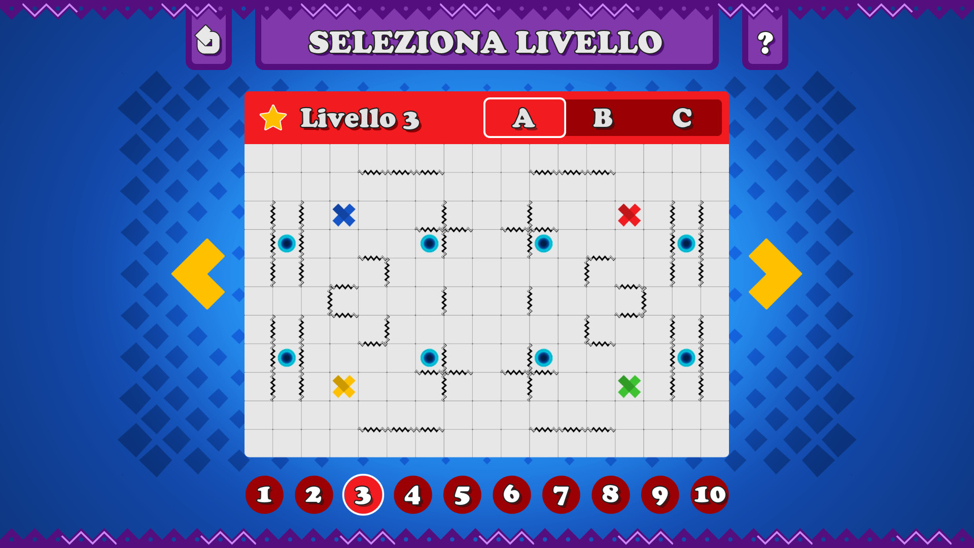 Scegli tra 10 livelli, ognuno con 3 partenze differenti. Con il progredire dei livelli aumenta la complessità del gioco.
