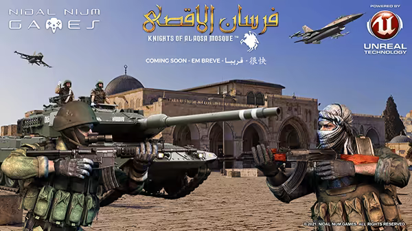Fursan al-Aqsa: The Knights of the Al-Aqsa Mosque is a game which addresses the Israel x Palestine conflict from a Palestinian perspective, breaking the cliché of portraying Muslim and Arabs as Terrorists, Bandits, Villains and the Americans/Israelis as the "Good Guys" and "Heroes" of History. This is the first game in the games industry which addresses such a sensitive topic, in a realistic way, showing the other side of history, which is very unknown by people, mostly here on west.