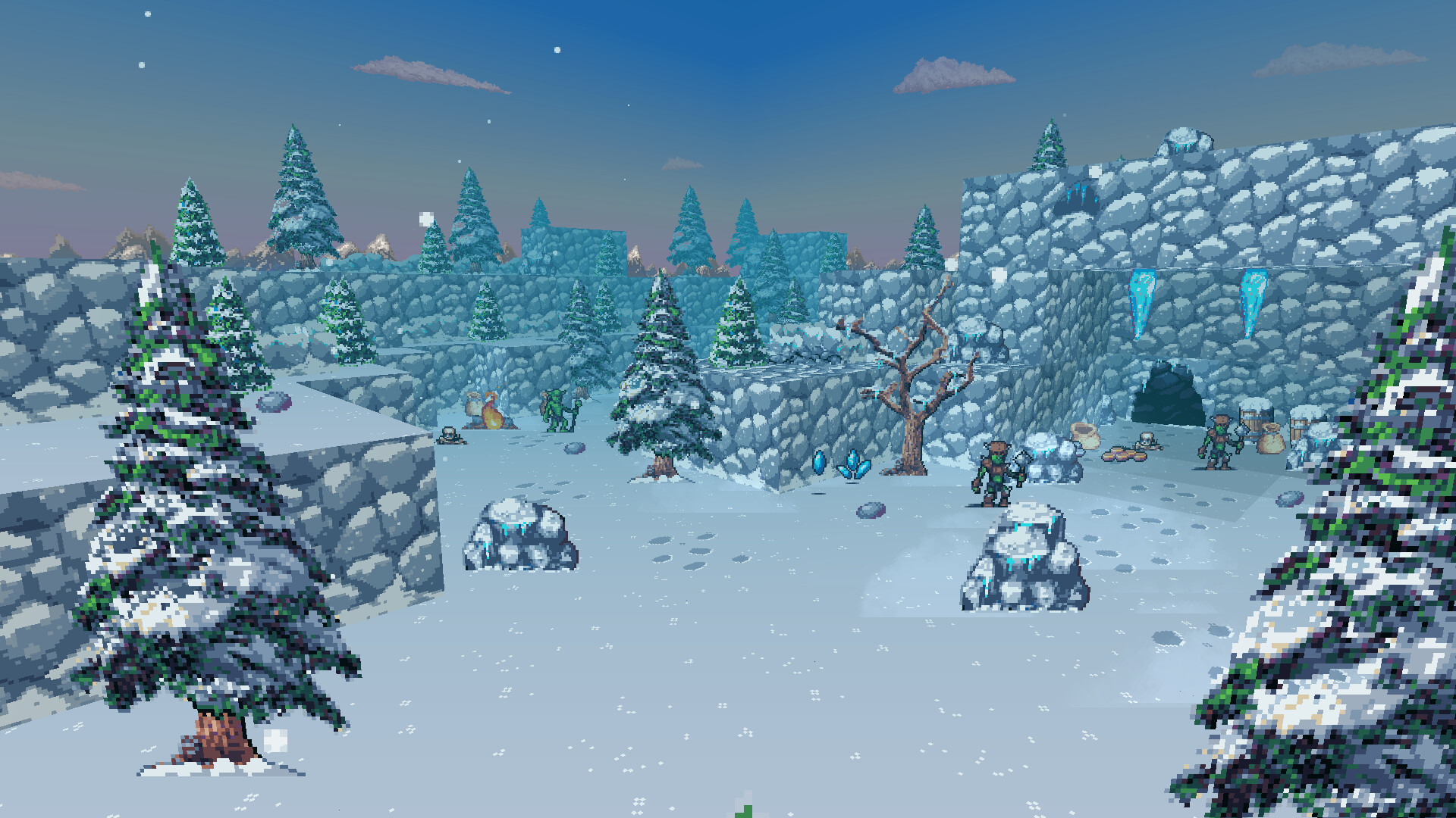 • Embark on a single-player campaign to find the source of Chaos, traveling from the Town of Grimbrook through swamps over the snowy mountains and beyond.