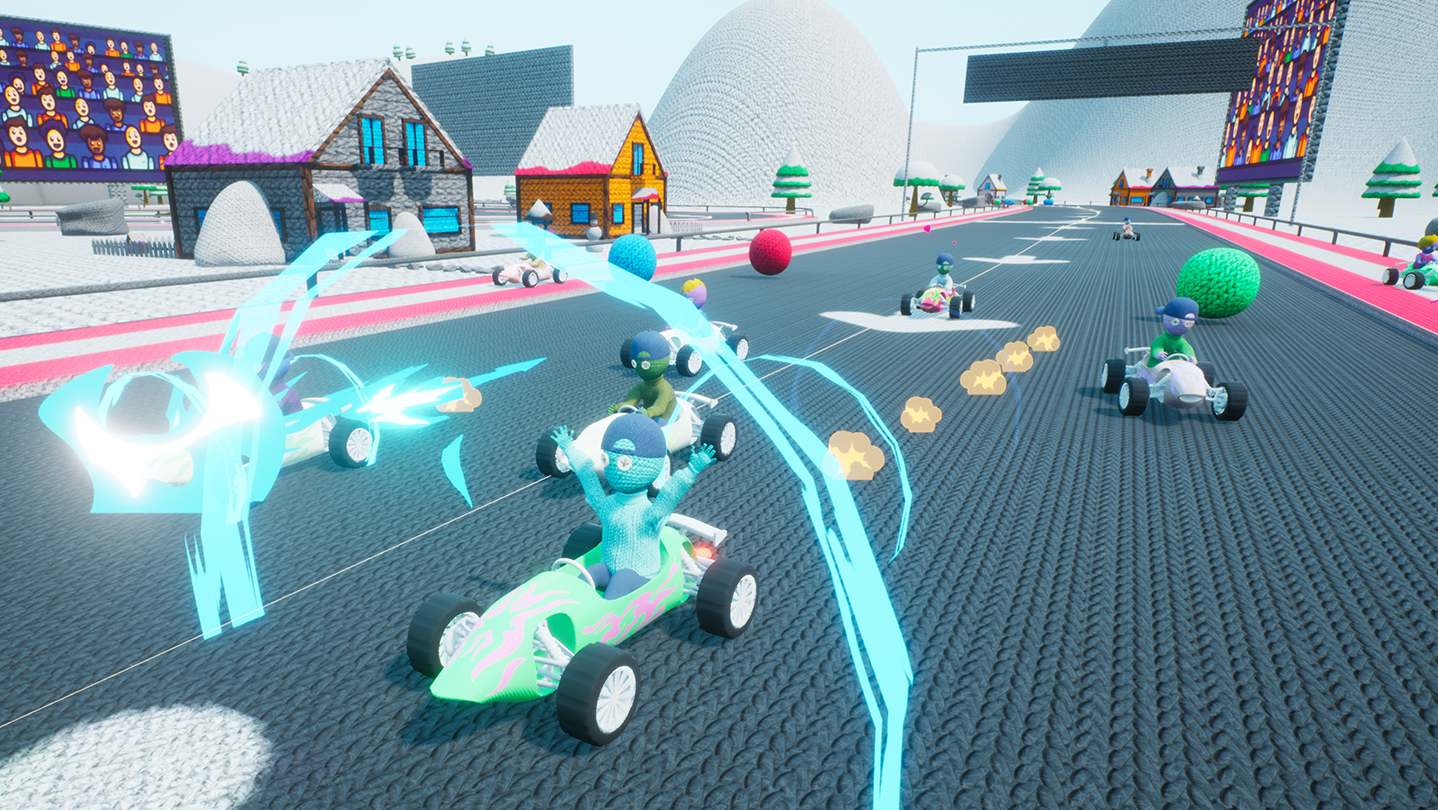 An action Kart Racing game in which you control one of the dummies, and use its abilities and weapons to go through a series of chaotic challenges to get to the first place.