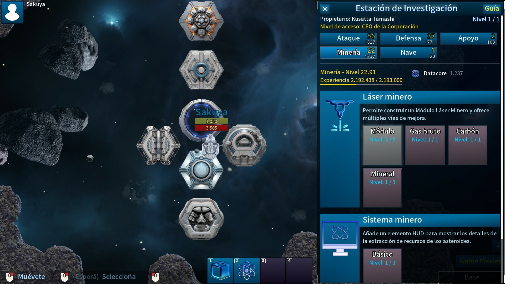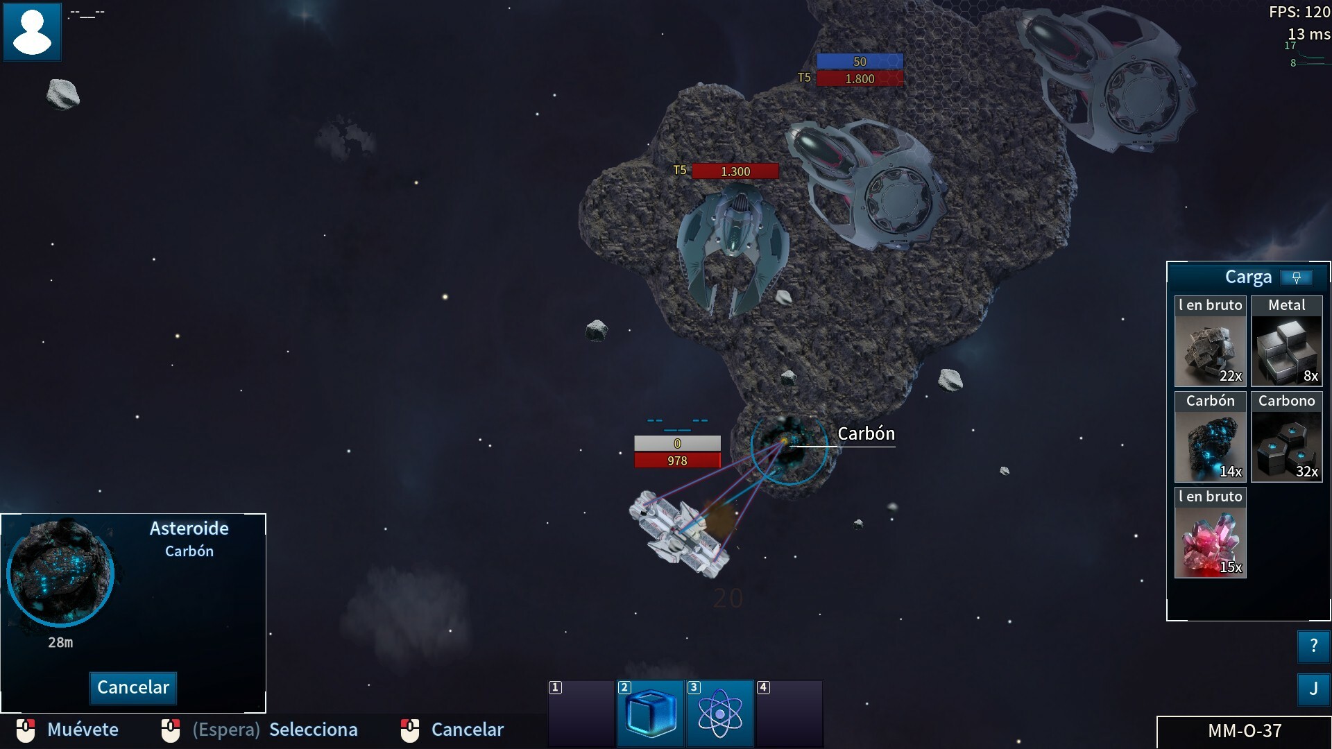 Extrae valiosos recursos de los asteroides para construir naves y equipamiento, investigar nuevas tecnologías o construir una base.