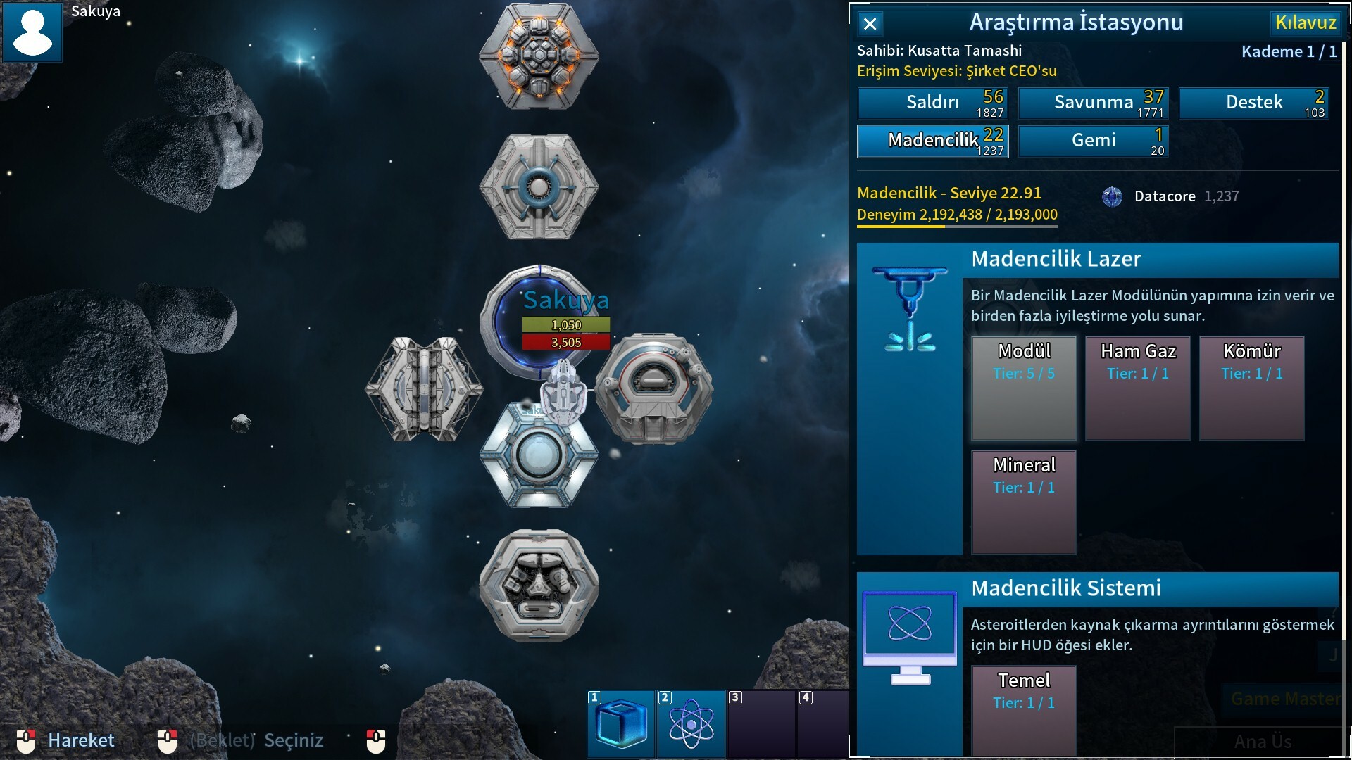Gemiler ve ekipmanlar inşa etmek, yeni teknolojiler araştırmak veya bir üs inşa etmek için asteroitlerden değerli kaynaklar çıkarın.